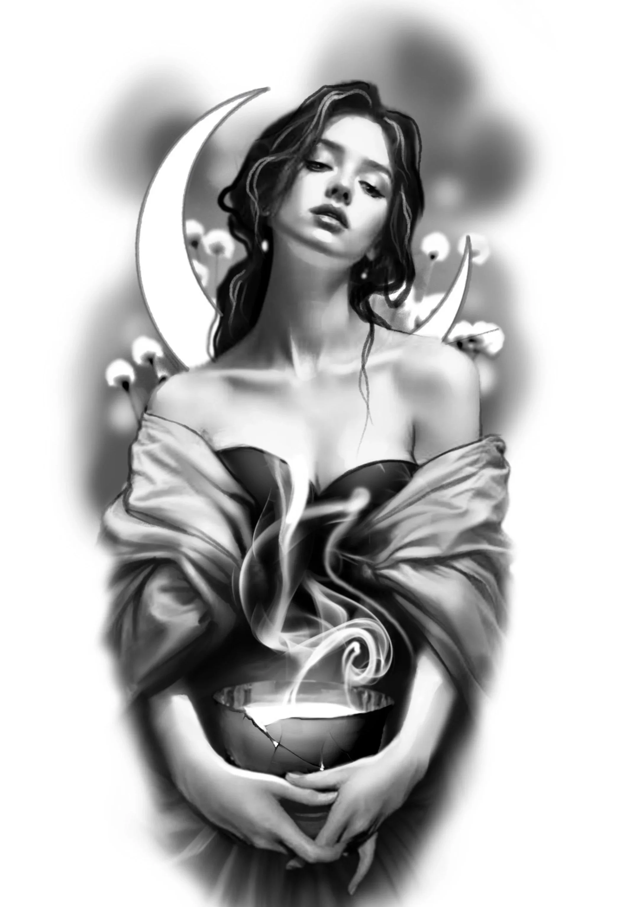 Valmiit tatuointimallit toteutetaan sellaisinaan. Kuvaa voi skaalata tatuoitavaan alueeseen sopivaksi ja tarvittaessa kääntää peilikuvaksi.